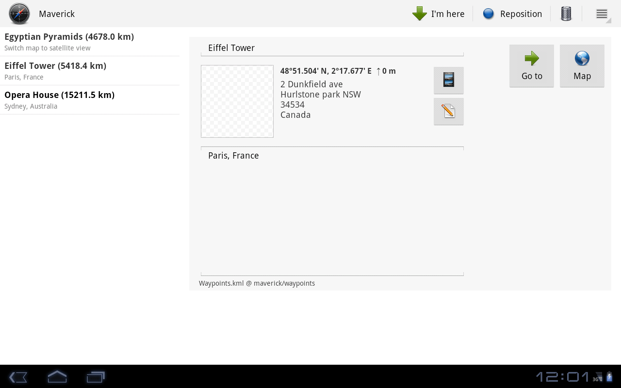 All waypoint stored in KML file and can be viewed and edited in Google Earth.